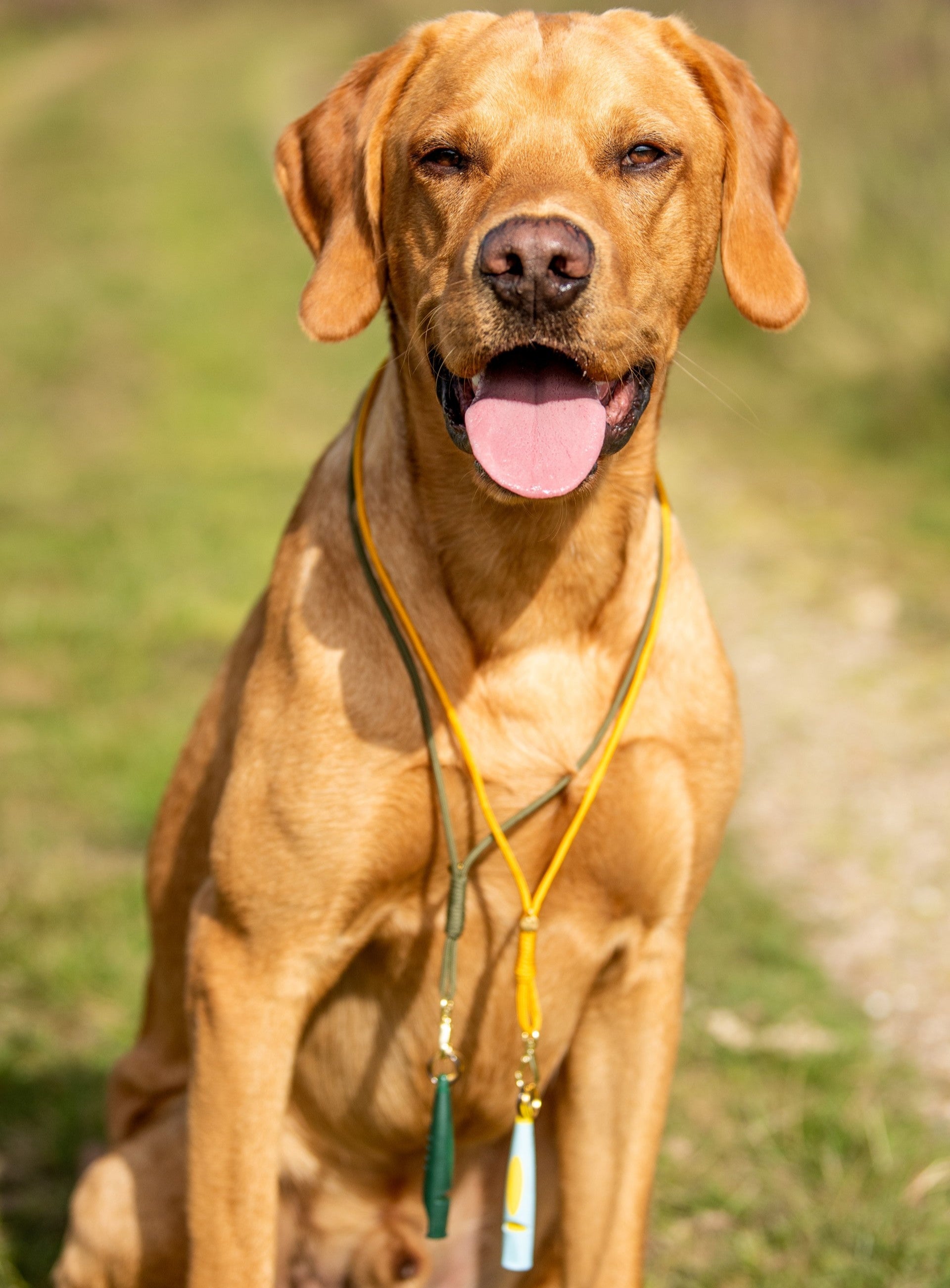 Hands-free line m. indbygget halsbånd Walnut/Golden rod